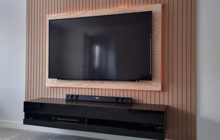 A floating TV unit should generally be wider than your TV, or at the very least feel proportionate to it. A unit that is too small can look awkward and underwhelming, while one that is too large may overpower the room.