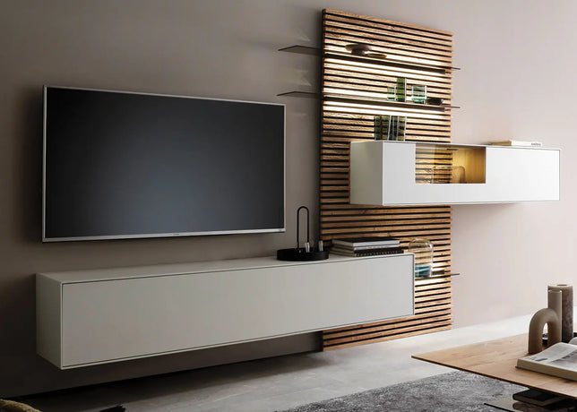 Wall mounted TV units are furniture pieces fixed directly onto the wall, designed to hold or complement your television while offering storage and visual appeal. Unlike traditional TV stands, they do not sit on the floor, creating a floating, minimalist appearance.