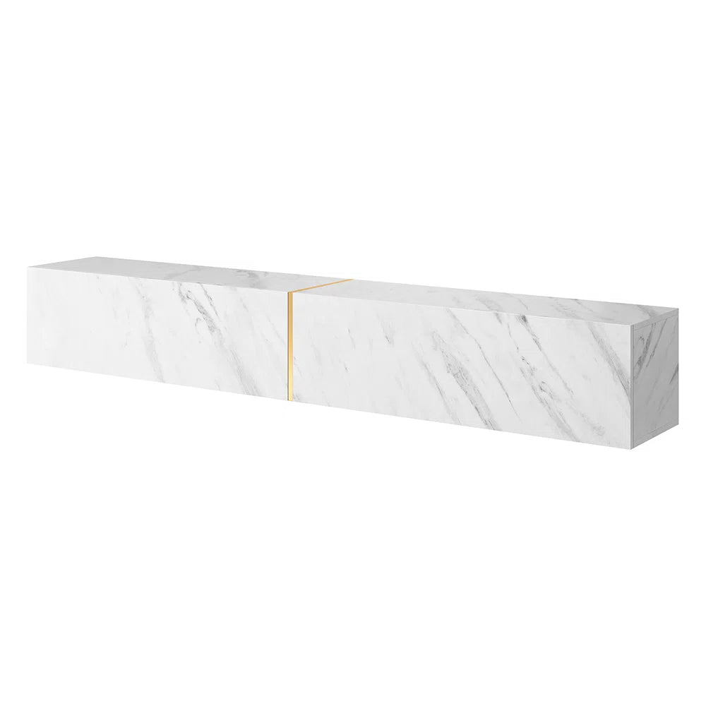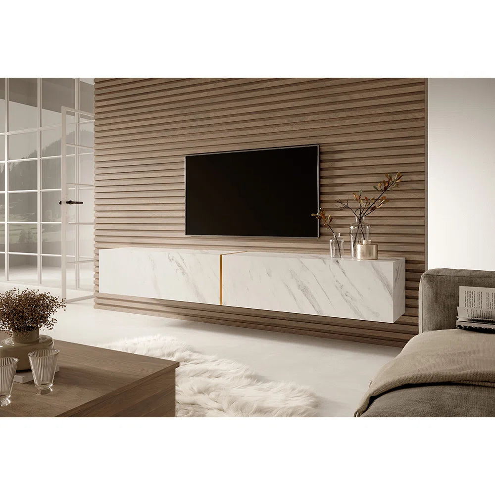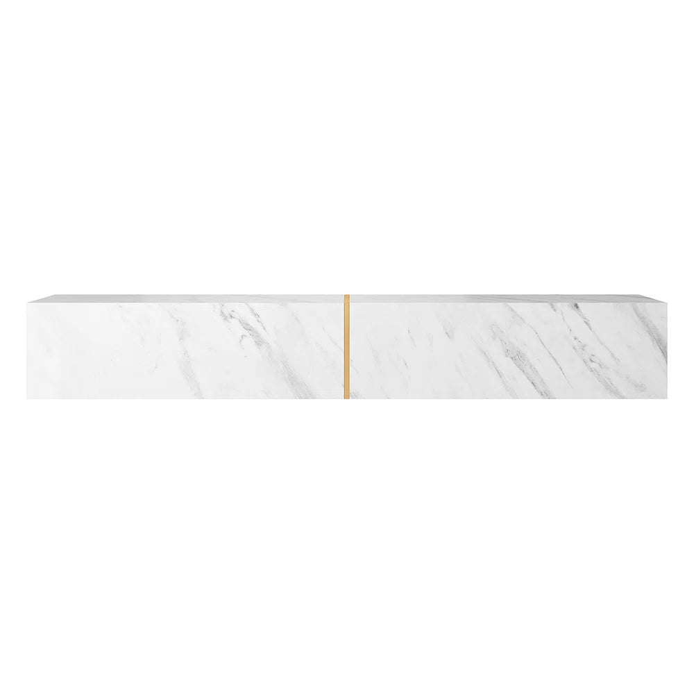 Bring bold elegance and everyday practicality into your living space with the Bramblyn TV Stand. Designed with a sleek white finish enhanced by a vertical gold marble-effect insert, this statement piece transforms any living room with minimal effort. Its clean, floating form complements both modern and classic interiors, while the subtle golden accent adds a luxurious touch that draws the eye without overwhelming the room.