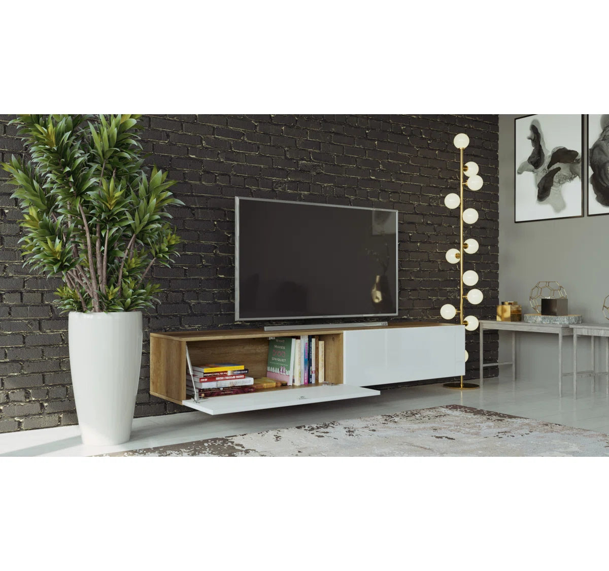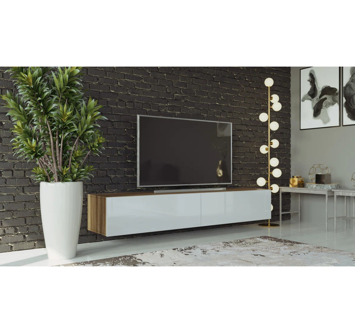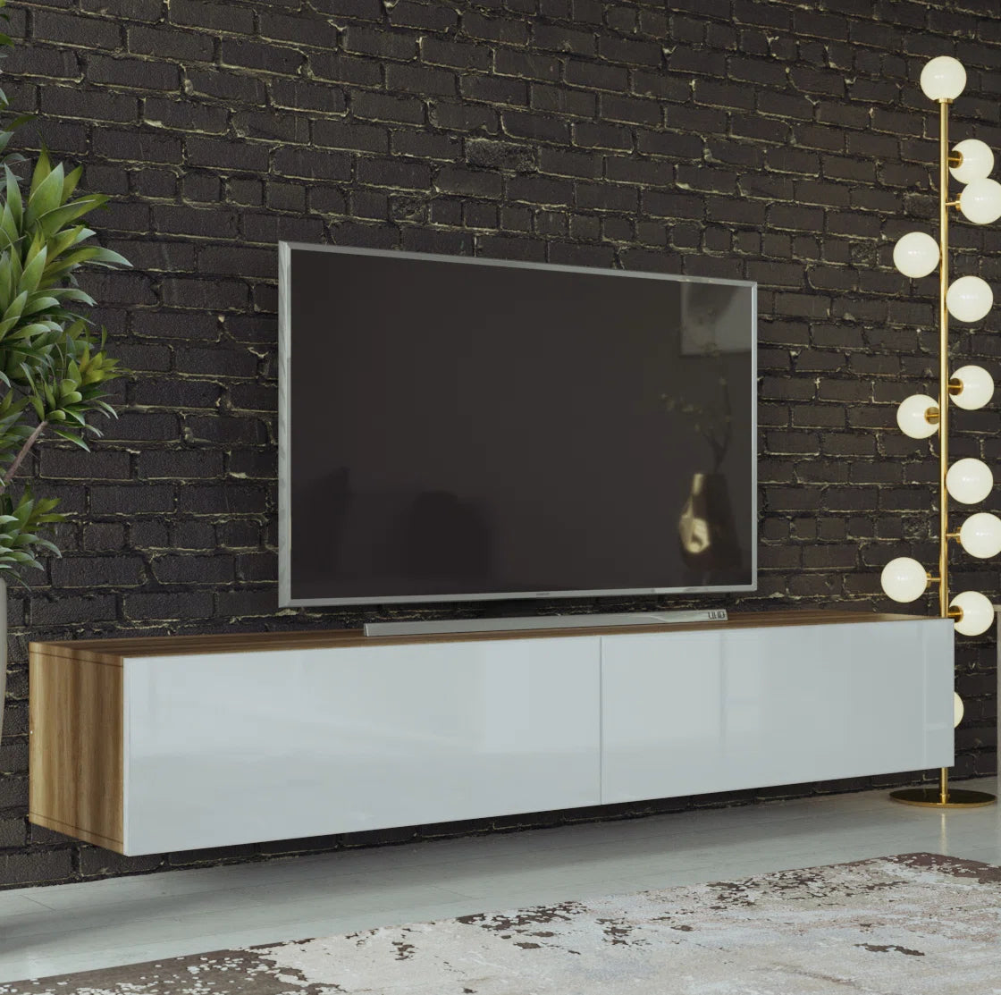A perfect blend of style and function, the Eli TV Stand adds a modern touch to your living space while offering maximum storage in a sleek, space-saving design. Its country oak frame paired with glossy white drawer fronts creates a sophisticated contrast that complements both contemporary and classic interiors. Ideal for living rooms or bedrooms, this floating-style unit keeps your floor space clear while supporting large TVs up to 78 inches.