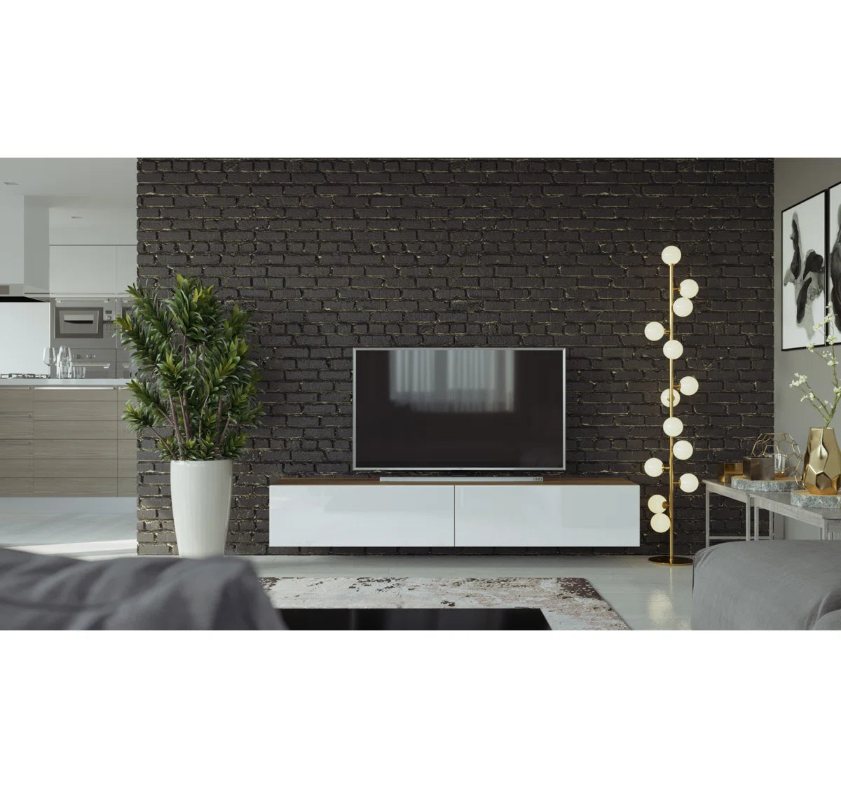 This media console is designed with two spacious drawers featuring a push-click opening system for easy access and a streamlined look—no handles required. Though stylish, it’s practical too: the surface is easy to clean and maintain, and it includes a built-in sound bar shelf. Please note that remote signals may not pass through the closed drawers, which is ideal for keeping clutter hidden but may require consideration for device placement.