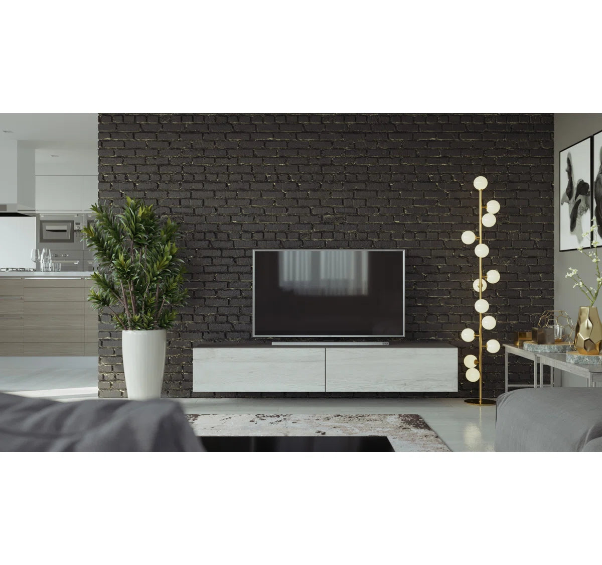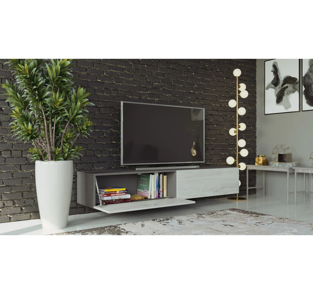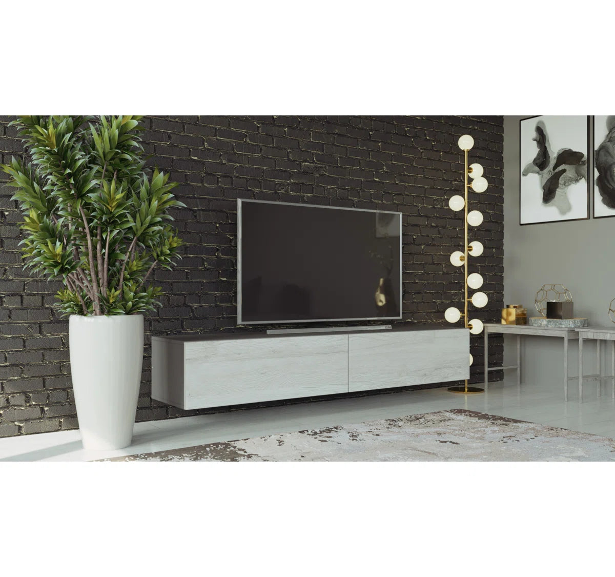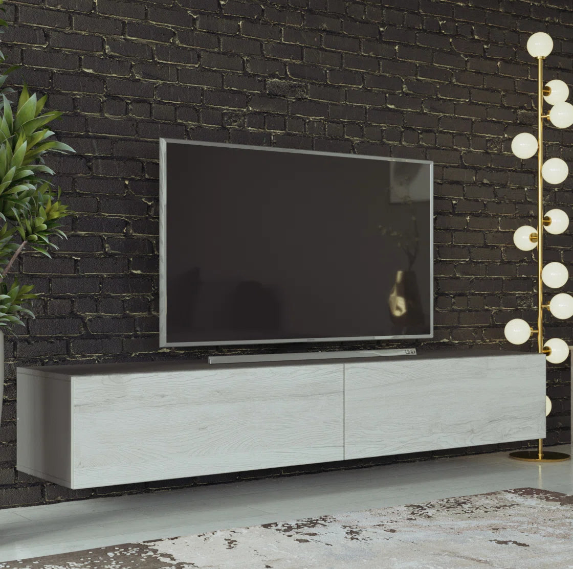 With a sleek floating-mount design and a modern two-tone finish, the Eli TV Stand brings both sophistication and practicality to your living space. Designed for compact efficiency without compromising on storage, this stand is ideal for organizing your media essentials in style. Its minimalist silhouette and elegant slate gray and white Monaco palette make it a perfect addition to contemporary or transitional interiors.