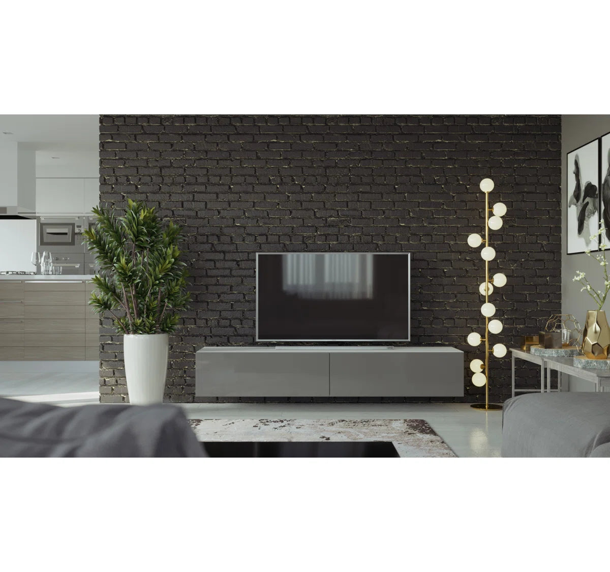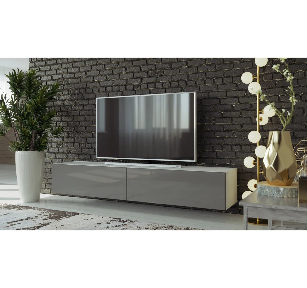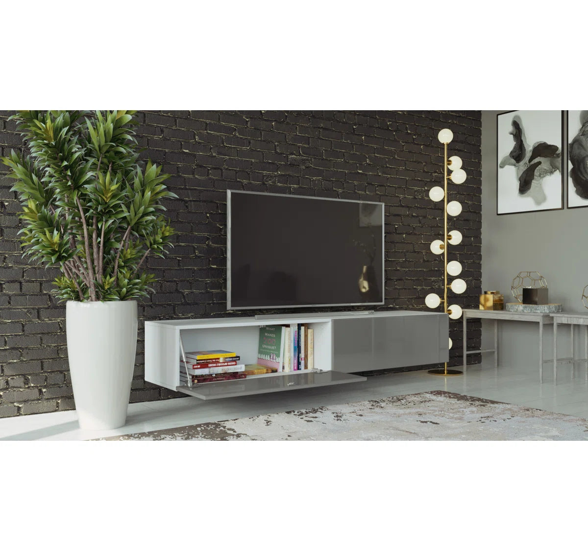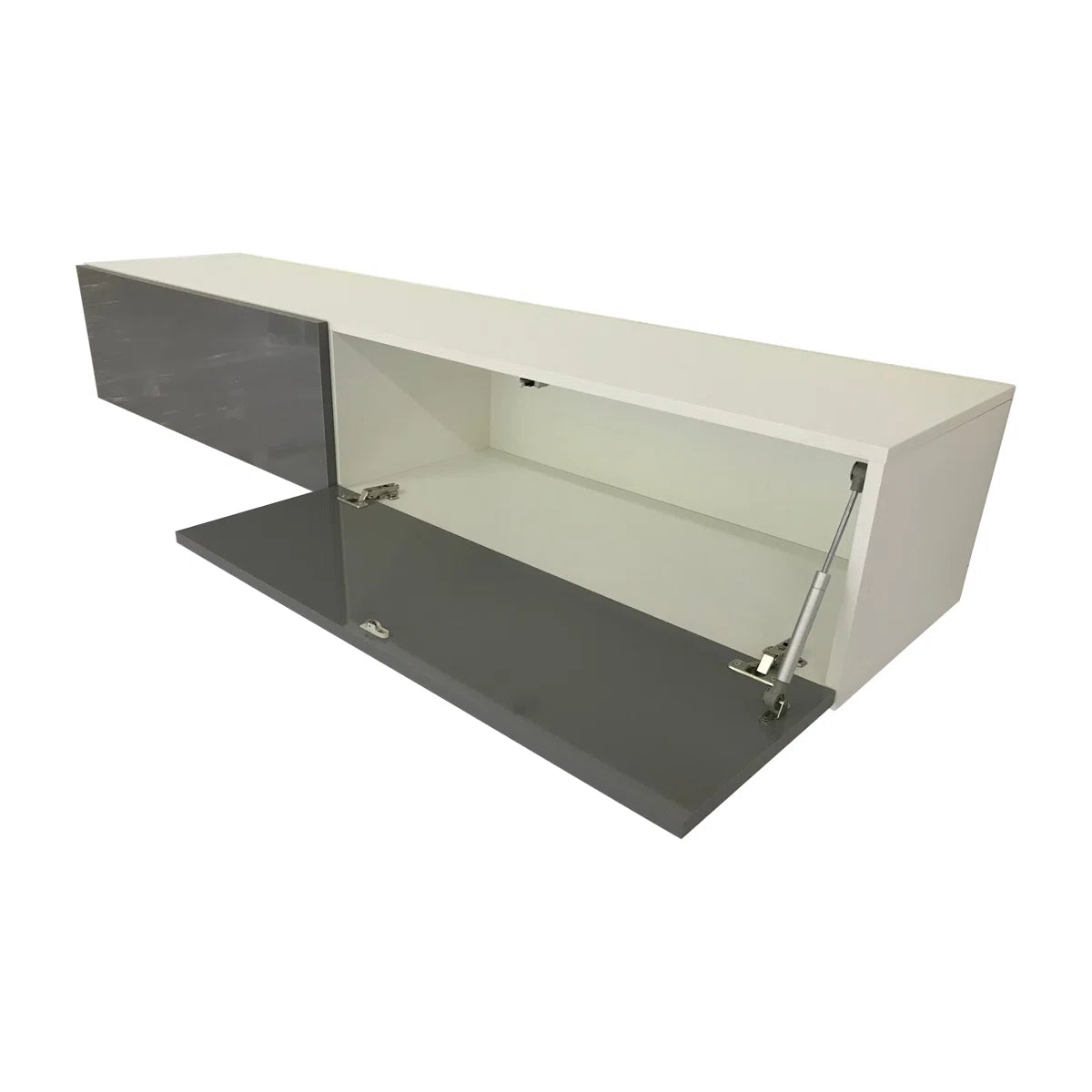 Sleek, modern, and effortlessly sophisticated, the Eli TV Stand brings functional elegance to your living space. With its floating mount design and high-gloss slate gray front paired with a clean white frame, it makes a striking visual statement while keeping clutter out of sight. Perfectly suited for contemporary interiors, this unit offers generous storage without overwhelming your room's layout.