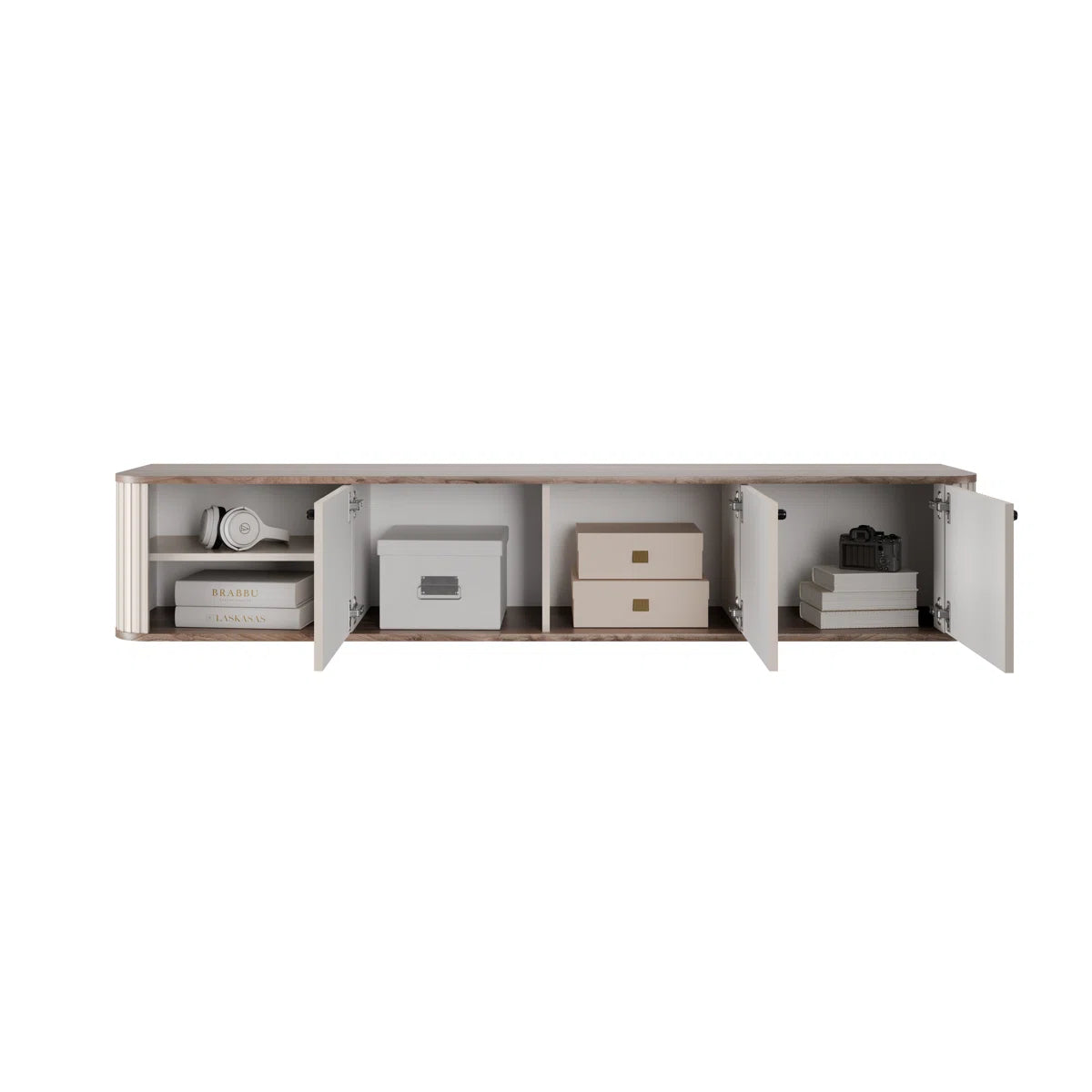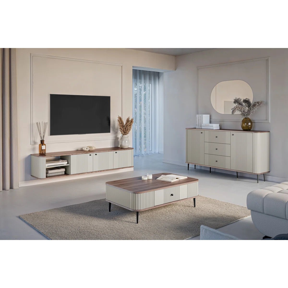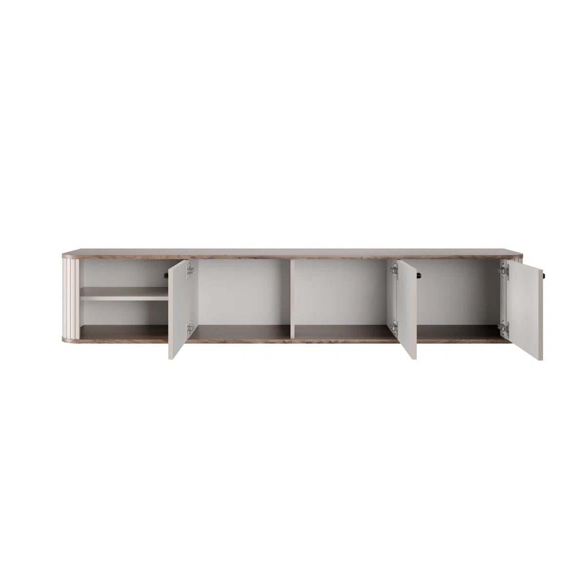 The standout feature of the Elish TV Stand is its ribbed MDF front, which adds sophisticated texture and visual depth. Combined with soft-close cabinets and a smooth silhouette, it offers both functionality and high-end design. Whether you're aiming for a minimalist media wall or just seeking a space-saving solution with ample storage, this unit delivers elegance without compromising practicality.