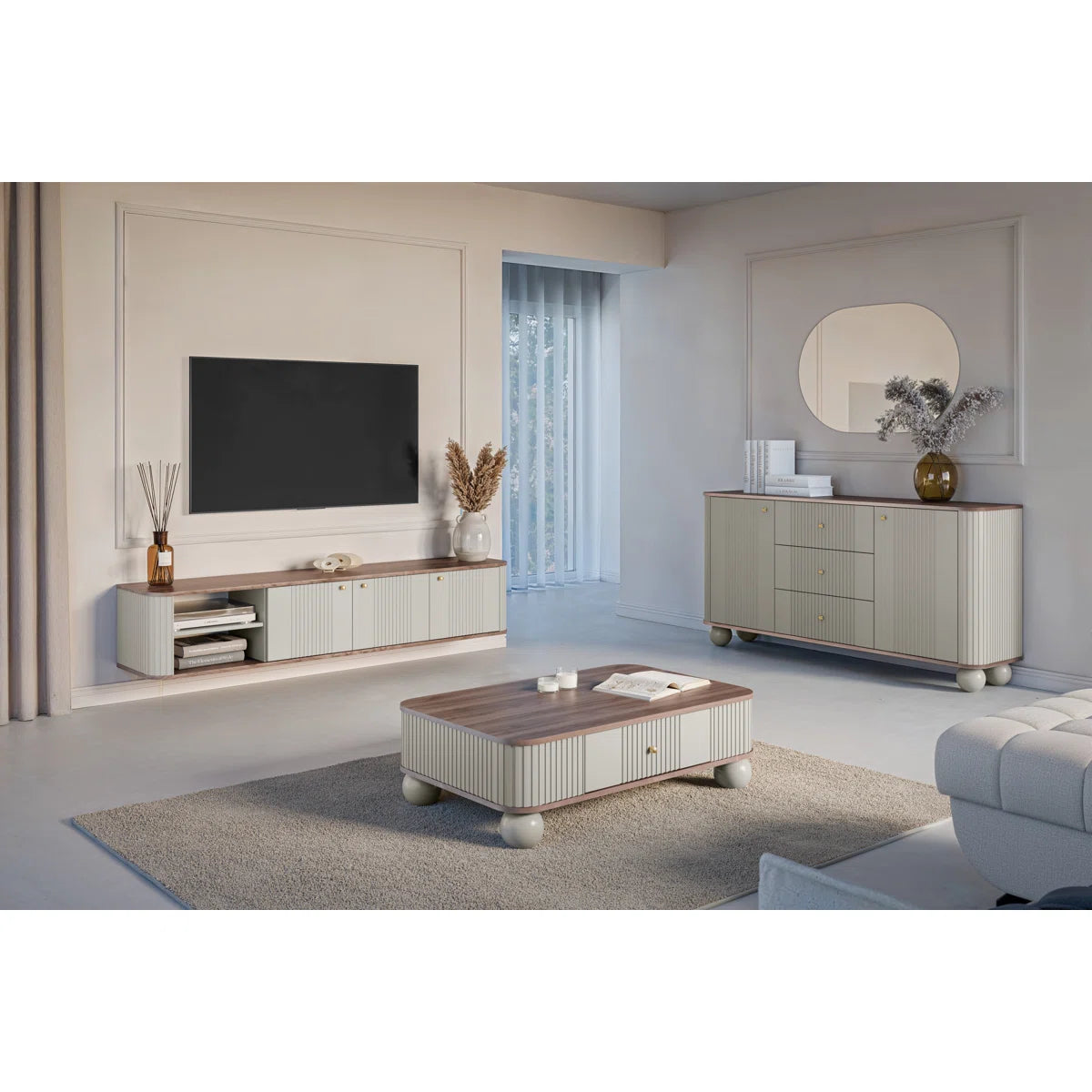 The standout feature of the Elish TV Stand is its ribbed MDF front, which adds sophisticated texture and visual depth. Combined with soft-close cabinets and a smooth silhouette, it offers both functionality and high-end design. Whether you're aiming for a minimalist media wall or just seeking a space-saving solution with ample storage, this unit delivers elegance without compromising practicality.