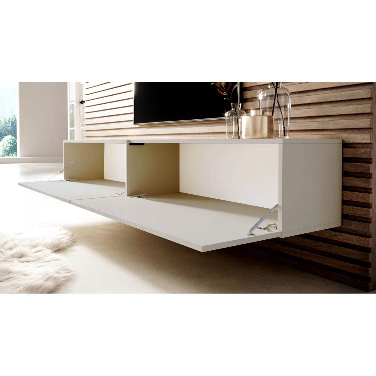 Add a touch of glamour and modern elegance to your living room with the Irene TV Stand in White. Inspired by contemporary design aesthetics, this wall-mounted unit features a sleek matte white finish, making it a true statement piece. Its clean lines detailing elevate any space, turning your media area into a showcase straight out of an interior design magazine.