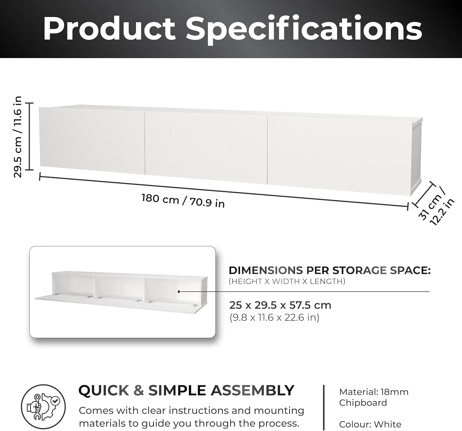 - Material: Engineered Wood (18 mm chipboard)