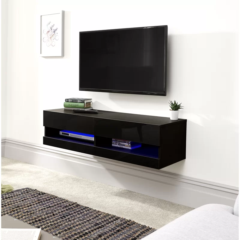 The Korando Floating TV Unit is the perfect way to create an inviting living space. Designed with a contemporary yet practical design, this attractive wall mounted TV unit will give off that floating sensation while giving you two spacious compartments and two shelves in which to store all of those DVD's and video games!