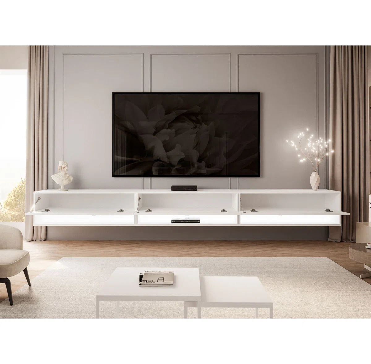 Discover the Olivia Modern Wall TV Console for TVs up to 60''—a sleek and versatile entertainment centerpiece that effortlessly blends with any décor. Available in a variety of finishes such as matte white, deep ebony, and classic walnut, this floating TV cabinet offers a modern touch while providing ample storage for media components. Its handle-less, push-to-open doors reveal a spacious interior, making it both stylish and highly functional. Whether your living room features minimalist lines or a more traditional aesthetic, the Calante cabinet will complement your space with sophistication.