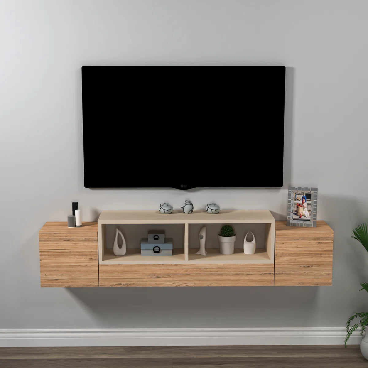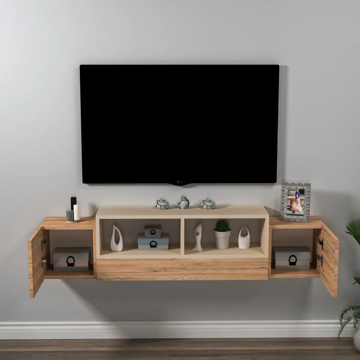 The Rowan Low Media Stand is a modern, floating-style TV unit that blends sleek design with everyday functionality—perfect for contemporary interiors looking for space-saving storage with a touch of minimalist flair. Crafted from 18mm melamine-coated particle board, this stand offers both durability and aesthetic appeal, with a brown wood finish accented by black cabinet panels.