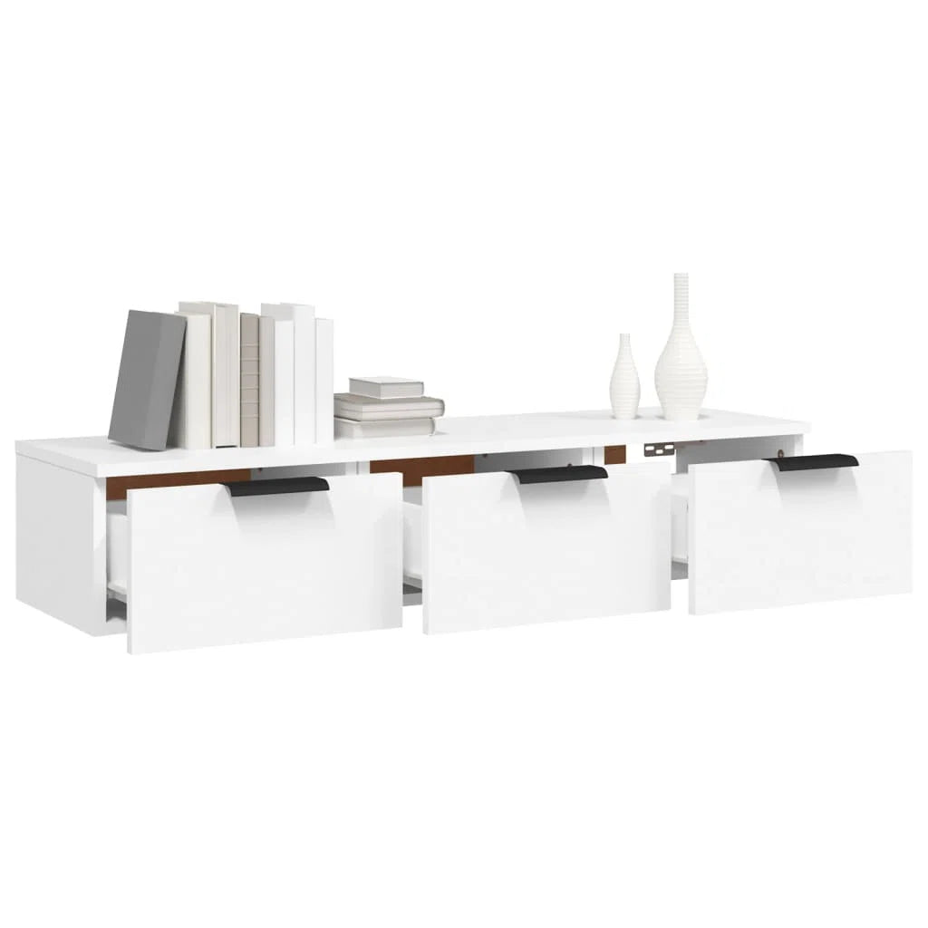 Add a touch of modern elegance to your space with this stylish wall-mounted cabinet, available in a range of trendy color options to suit any interior. Whether you're looking to upgrade your living room, bedroom, or office, this floating cabinet combines form and function with its sleek design and versatile use. Its compact dimensions of 102 x 30 x 20 cm make it ideal for smaller spaces while offering ample storage with three spacious drawers to keep your essentials organized and clutter-free.