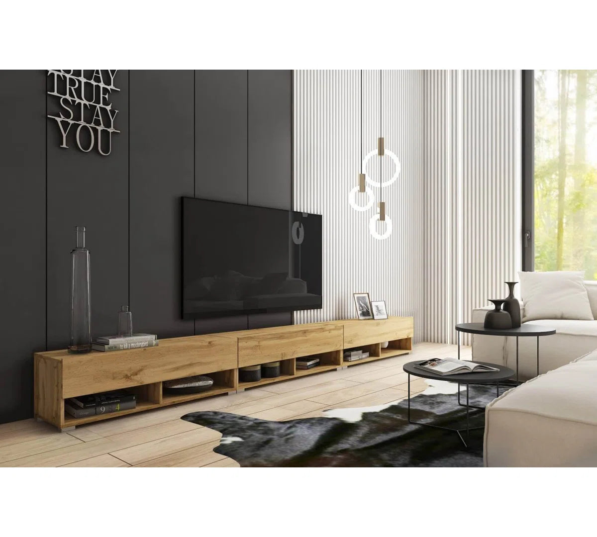 Designed for both beauty and functionality, the Sienna TV Stand features six enclosed cabinets and two open shelves, providing generous space for your media collection, electronics, and décor. Built-in cable management keeps wires hidden, while the stand’s solid structure supports TVs up to 88 inches and up to 60 kg in weight.