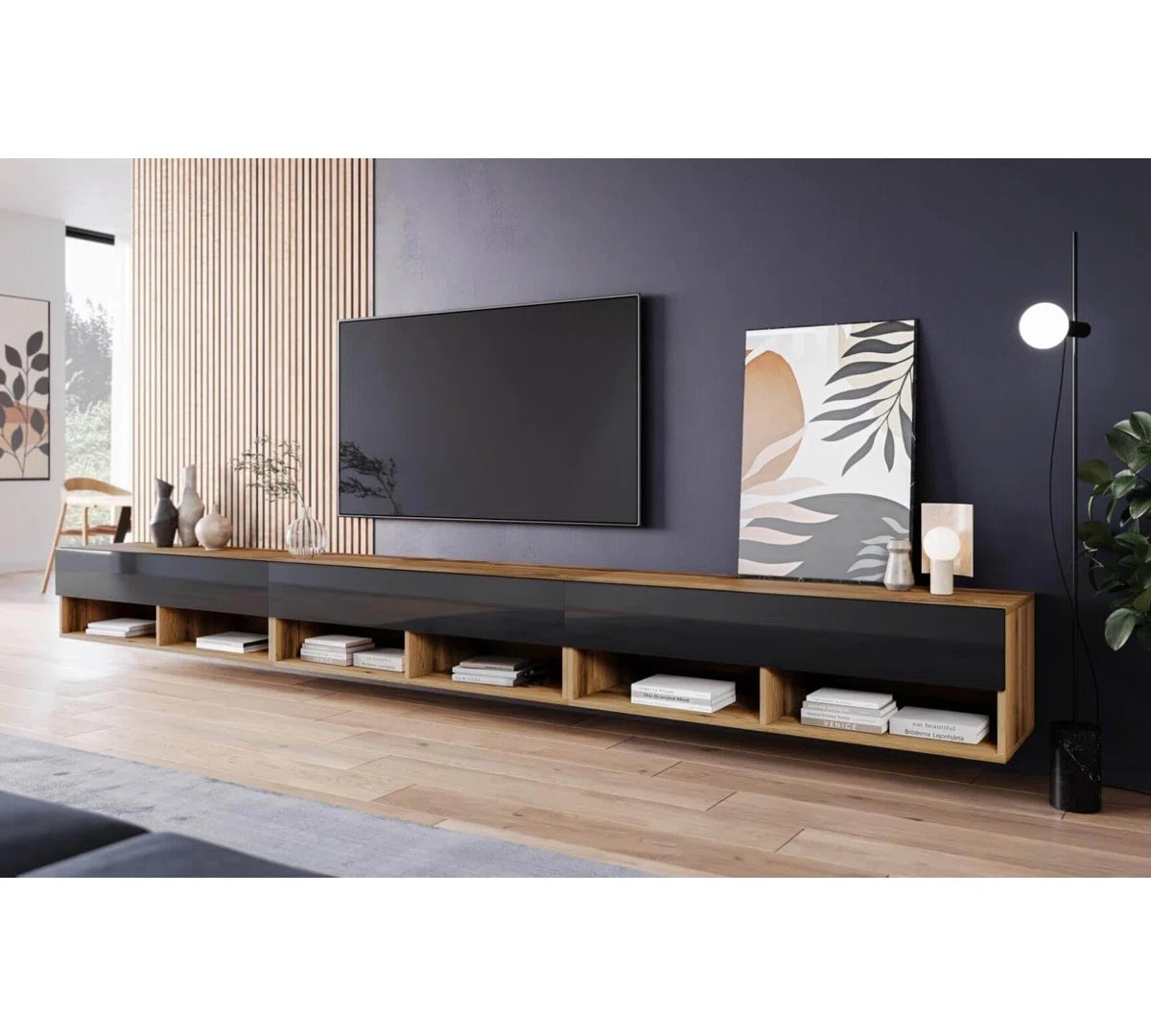 Transform your living space with the Sienna TV Stand, a sleek and modern centerpiece designed to complement today’s minimalist interiors. With its glossy front, clean edges, and floating design, it offers a stylish look that keeps your media area organized and clutter-free.
