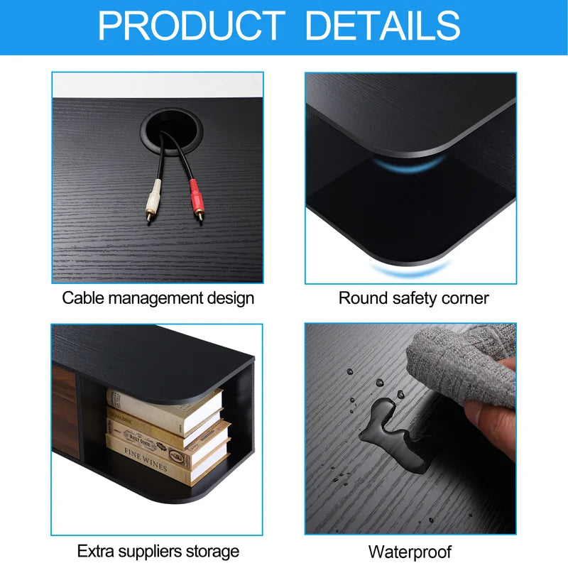 You may add some contemporary flare to your living space by hanging this modern TV set on the wall. Featuring 2-tiers storage spaces, this wall-mounted TV shelf is perfect for holding TV components, gaming accessories, books, decor.