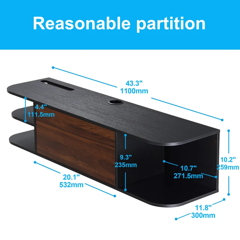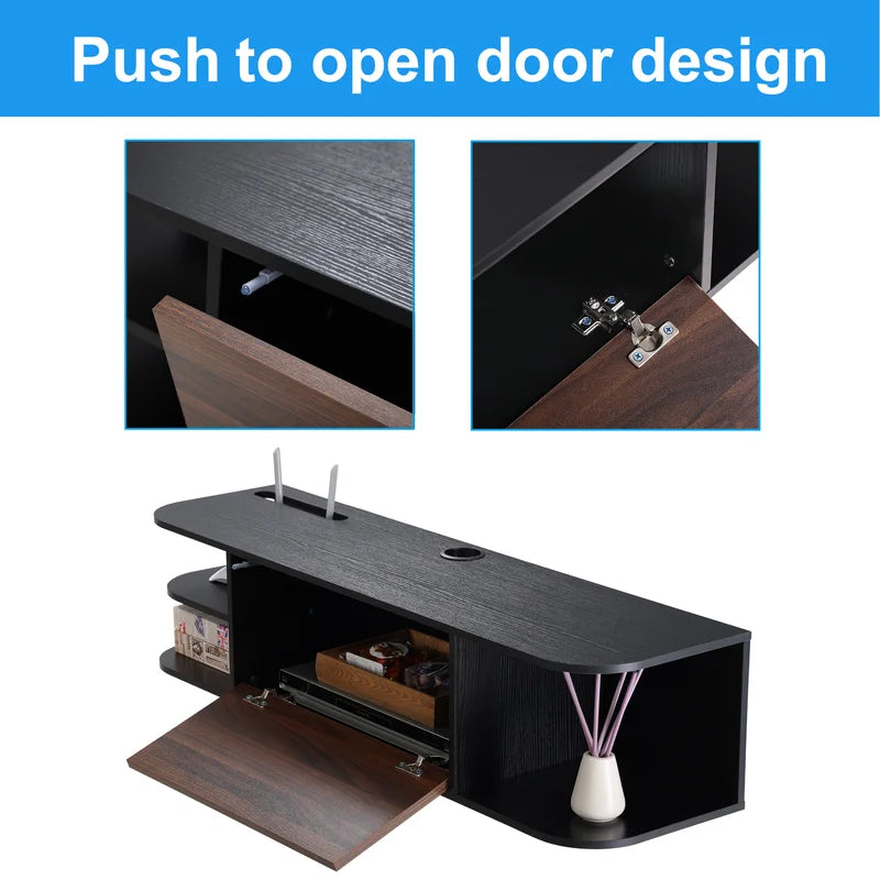 Give any room a dash of modern style with the wall-mounted audio/video console Weir floating TV stand. Thanks to the choice of serene colors and its understated design, it will effortlessly fit into any interior style or taste for those who respect timeless beauty. It will add a touch of classiness and vitality to your bedroom, living room, media room, office.