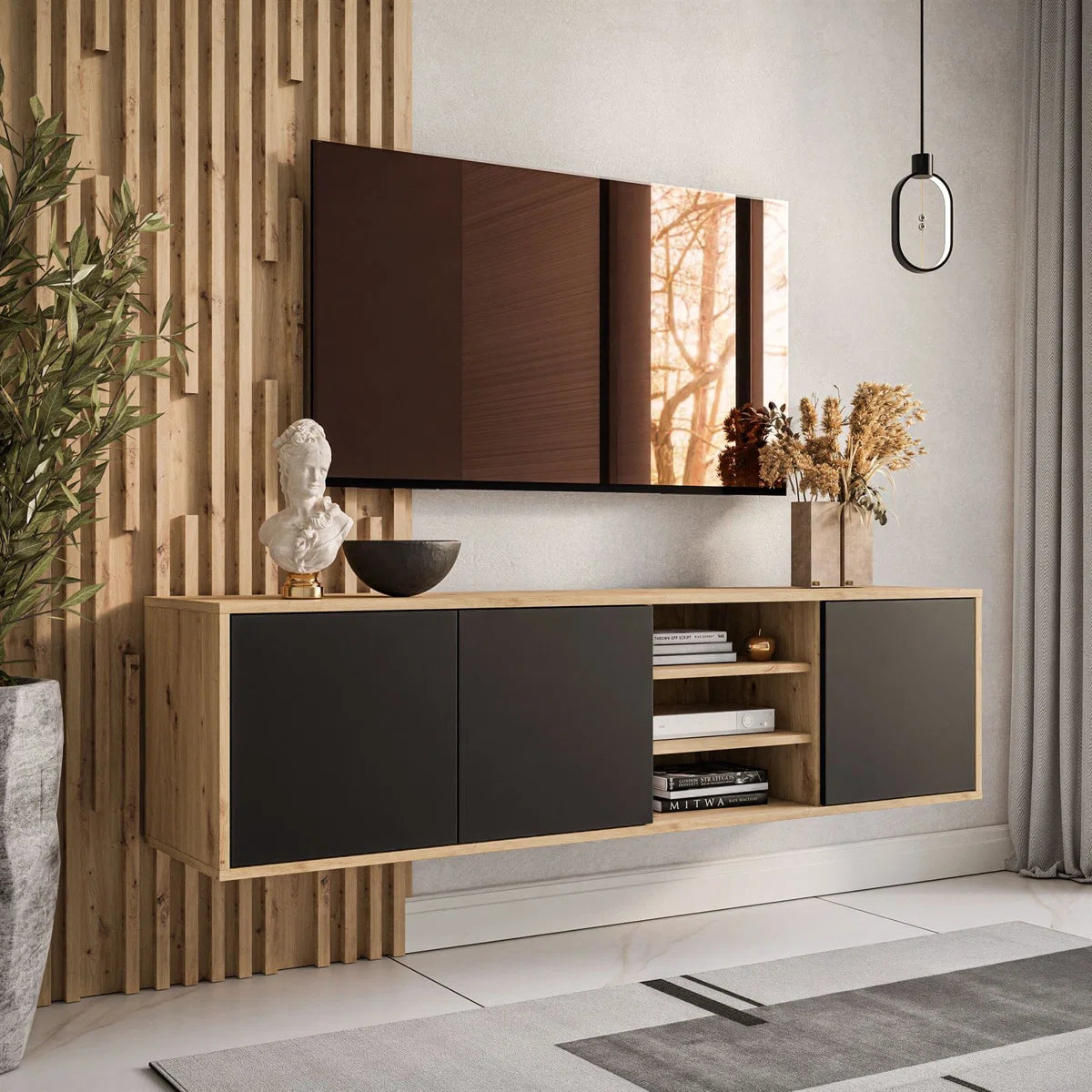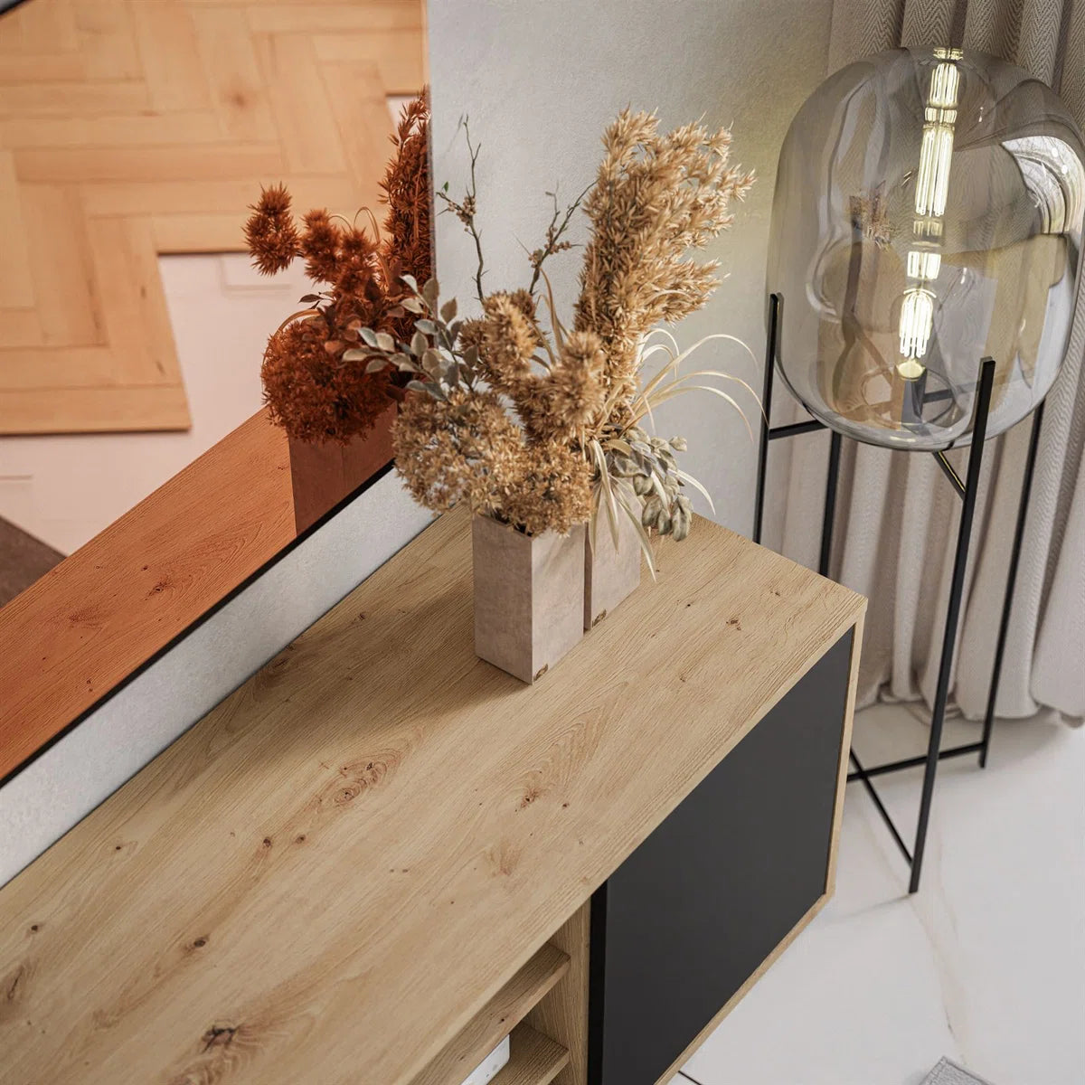 Elevate your living space with the sleek and contemporary Arlington TV Stand, designed to complement modern and minimalist interiors. Featuring a striking two-tone finish in Black and Artisan Oak, this piece adds a bold yet natural touch to any room. Its clean, handle-less design and floating-style construction make it an ideal choice for loft spaces and stylish apartments.