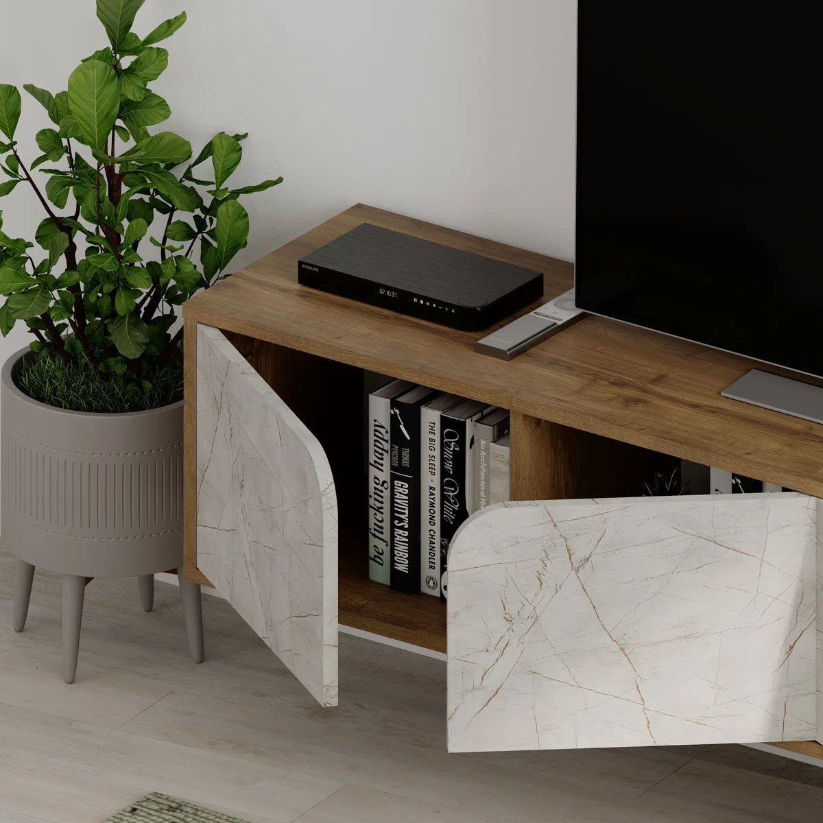 Brenda features four spacious cabinets ideal for concealing media devices, remotes, game consoles, and accessories—helping you maintain a clean and organized setup. Made from high-quality engineered wood with a protective melamine coating, this unit is both durable and easy to maintain. Whether you're going for a minimalist look or a warm modern vibe, it’s available in a variety of color options to match your décor.