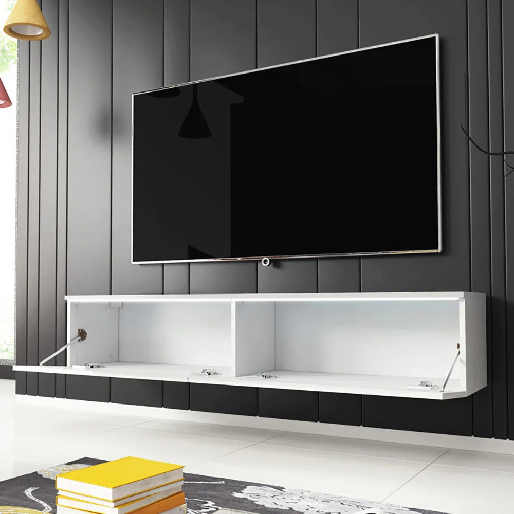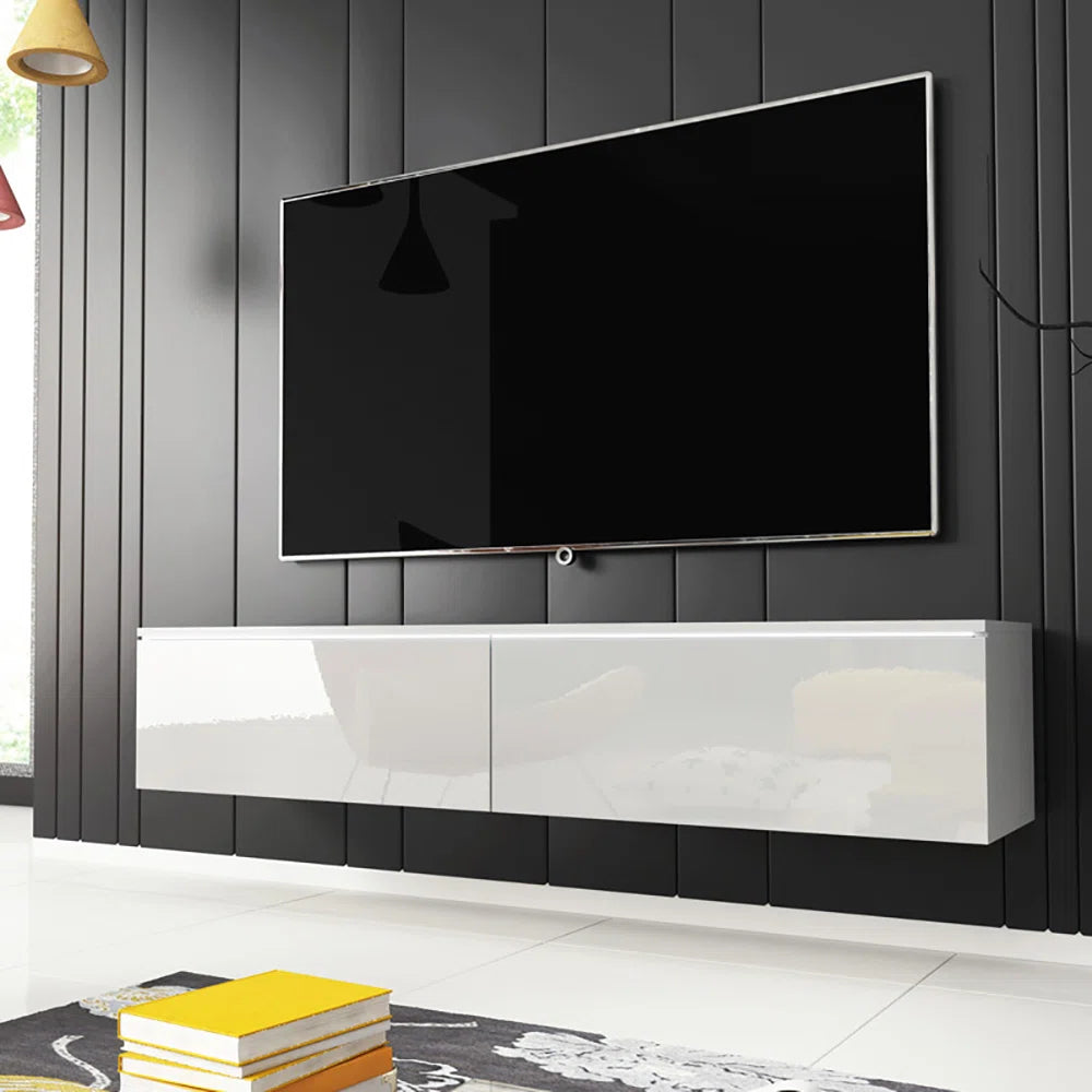 Add a sleek and stylish focal point to your living space with the Brighton TV Console, designed to bring both form and function to modern interiors. With its minimalist silhouette and dual mounting options, this TV stand can be installed as either a floating wall unit or a floor-standing cabinet—making it a flexible solution for various room layouts. The glossy front panels contrast beautifully with the matte sides, creating a refined, contemporary look that complements any modern décor.
