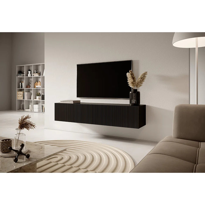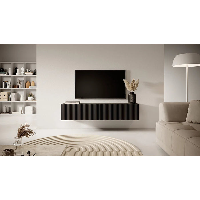 Complete your dream living room setup with the Diana TV Stand, a perfect fusion of minimalist design and bold character. Designed to accommodate TVs up to 60 inches, this wall-mounted cabinet brings a contemporary edge to your space with its sleek milled MDF front panels and elegant lamella detailing. The unique texture and design elevate the visual appeal of your room, making the TV unit not just functional, but a true statement piece.