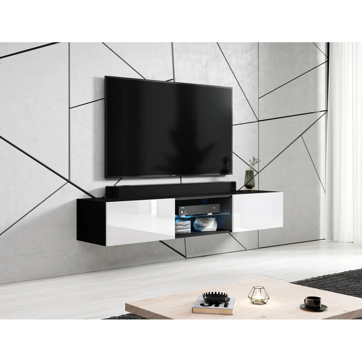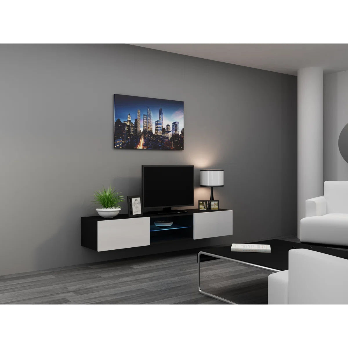 Bring a bold, modern statement to your entertainment space with the Jameson Media Shelf. Designed with a sleek black body and high-gloss front finish, this floating TV stand effortlessly enhances the aesthetics of any contemporary living room or bedroom. A central open shelf with integrated LED lighting adds a futuristic flair, perfect for displaying decorative pieces or housing your go-to electronics.