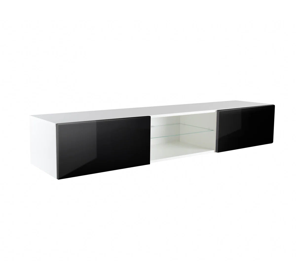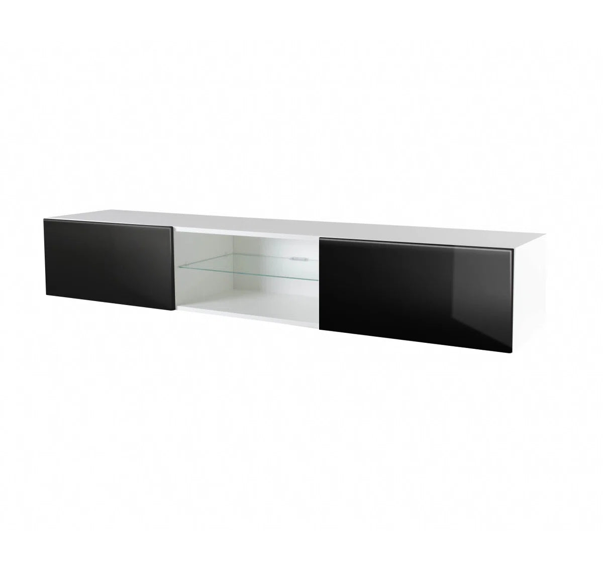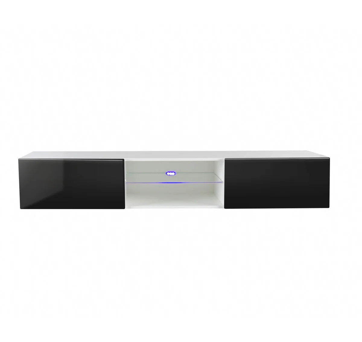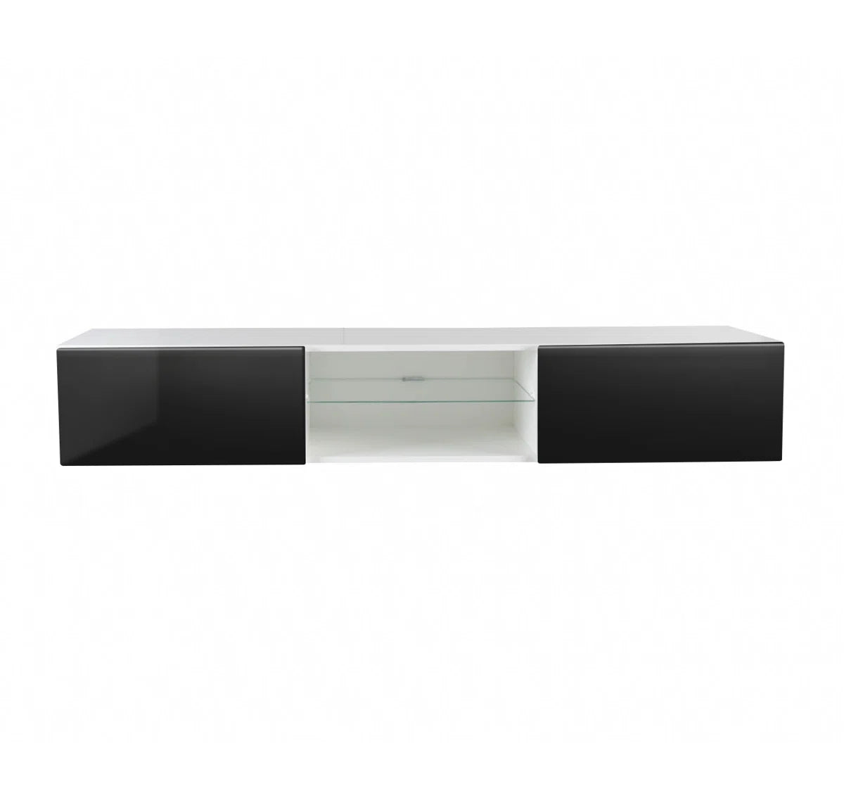 Bring a bold, modern statement to your entertainment space with the Jameson Media Shelf. Designed with a sleek black body and high-gloss front finish, this floating TV stand effortlessly enhances the aesthetics of any contemporary living room or bedroom. A central open shelf with integrated LED lighting adds a futuristic flair, perfect for displaying decorative pieces or housing your go-to electronics.