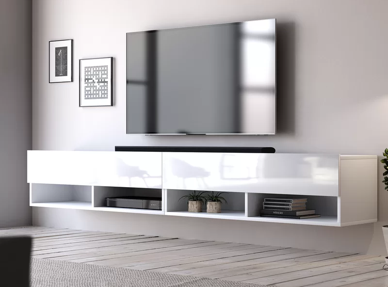 The Darcy Floating TV Unit is beautifully crafted to be a central point of your room with a modern yet practical design. This attractive Wall Mounted TV Unit is secured to the wall to give the impression of hovering above the floor making it a welcome addition to most living spaces. It features two spacious compartments and four internal shelves which make it perfect for storing all your magazines, video games and other essential accessories.