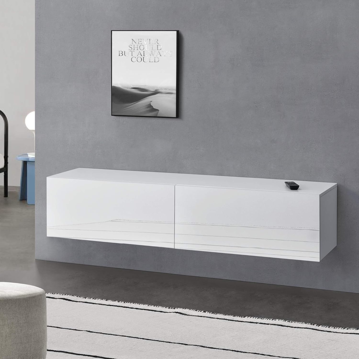 The Marley Wall-Mounted TV Unit in a White High Gloss finish brings together modern design, functionality, and space-saving innovation. Perfect for rooms where floor space is limited, this floating lowboard provides a sleek, contemporary solution for mounting TVs up to 65 inches. It can serve as a TV table, wall shelf, bedside cabinet, or console unit. The concrete-style surface gives your living area a minimalist, urban edge while blending effortlessly with a variety of interior designs. Its floating construction not only enhances visual space but also creates a clean, uncluttered atmosphere that’s ideal for modern homes.