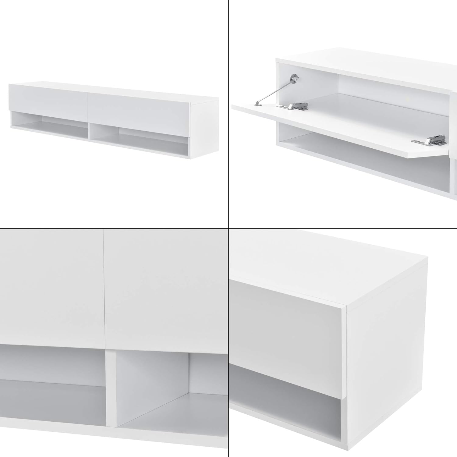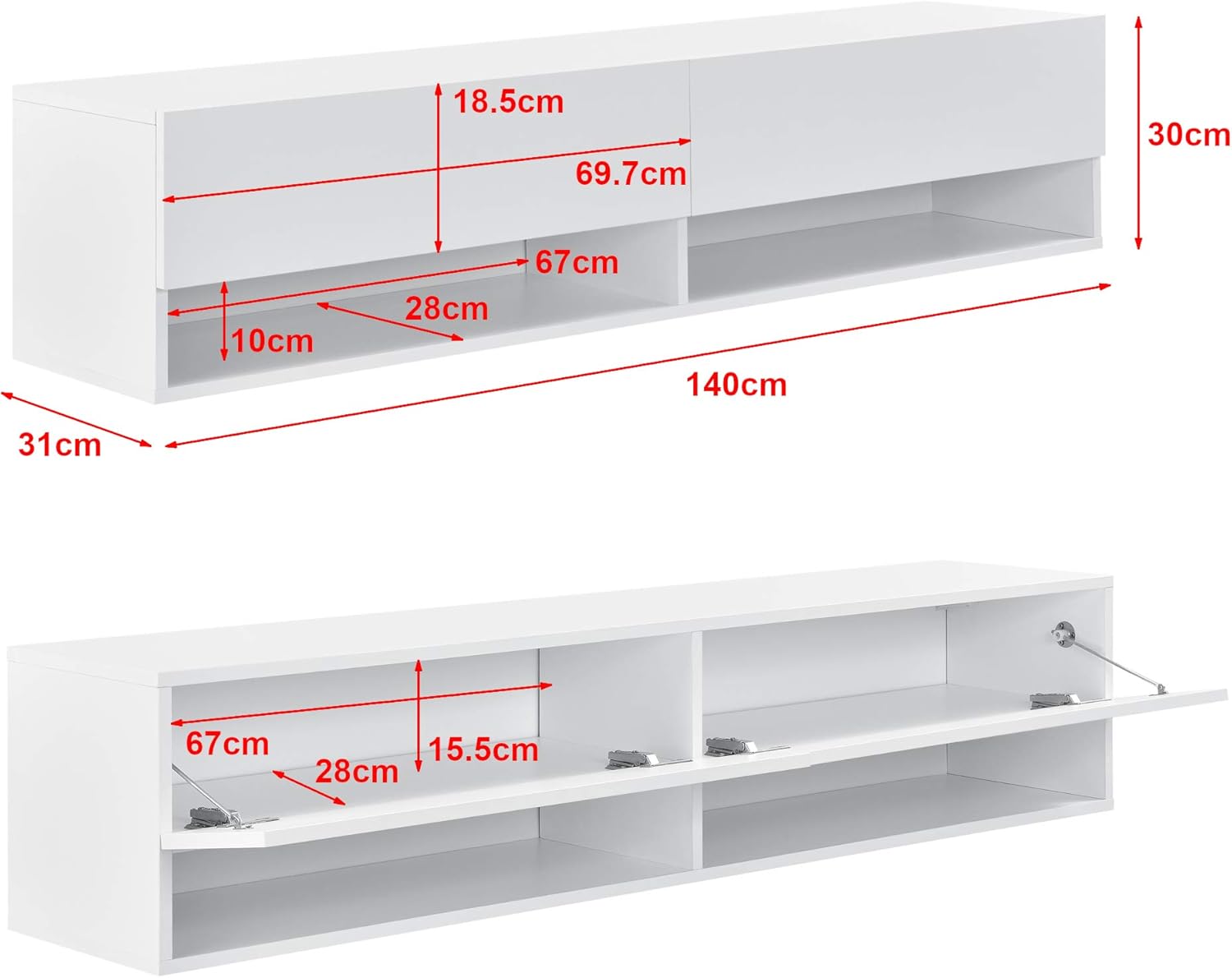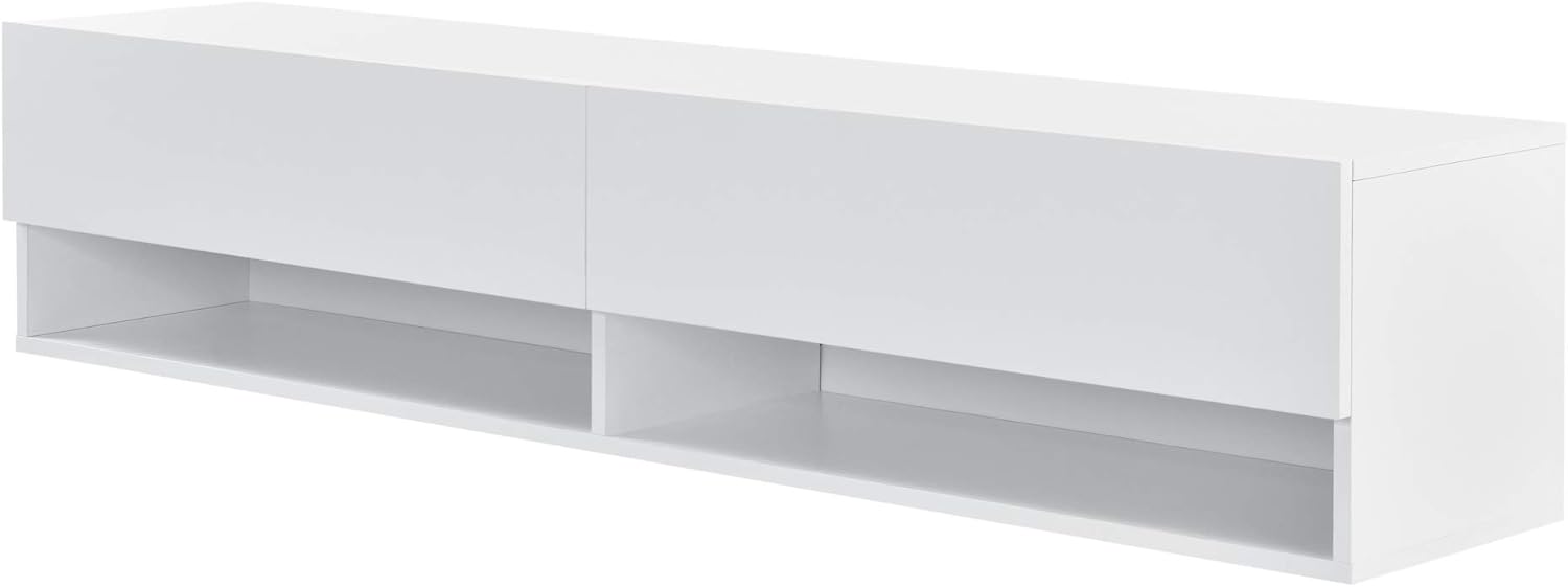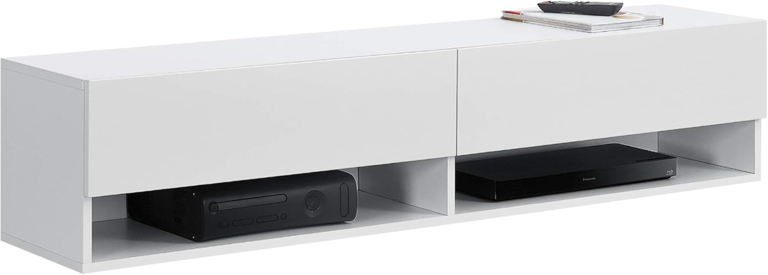 Constructed from durable, melamine-coated engineered wood, the Morgan unit offers strength, stability, and easy maintenance. It features two cabinet doors that open separately and two open storage compartments for consoles, DVDs, or decorative items. With a load capacity of up to 25 kg and simple wall-mount installation, this unit provides both practicality and visual appeal, making it an ideal centerpiece for your entertainment setup.