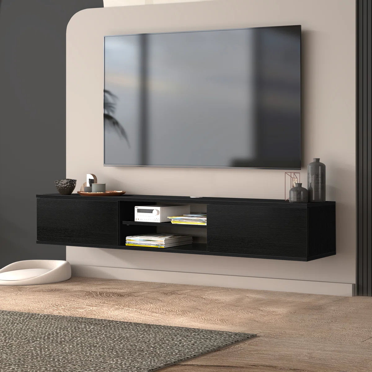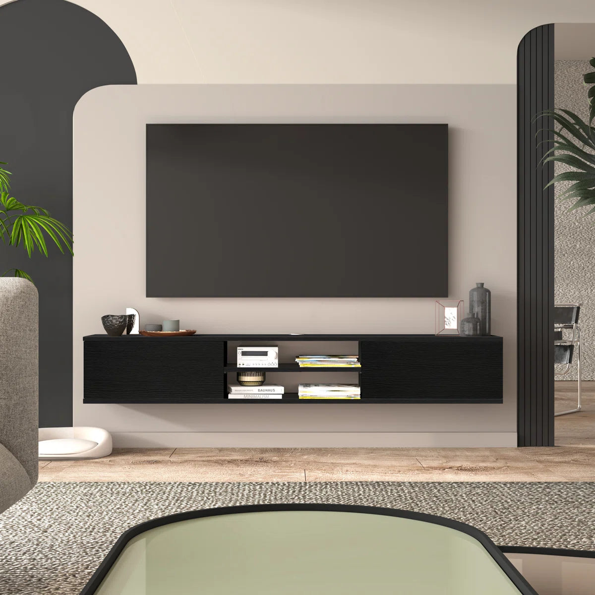 Bring sleek sophistication and modern function into your living room with the Rebecca Media Console. With its striking anthracite gray finish and floating design, this wall-mounted TV stand blends seamlessly into any contemporary space. Perfect for those who value a clean aesthetic, it effortlessly supports TVs up to 80", transforming your entertainment area into a clutter-free zone with refined elegance.