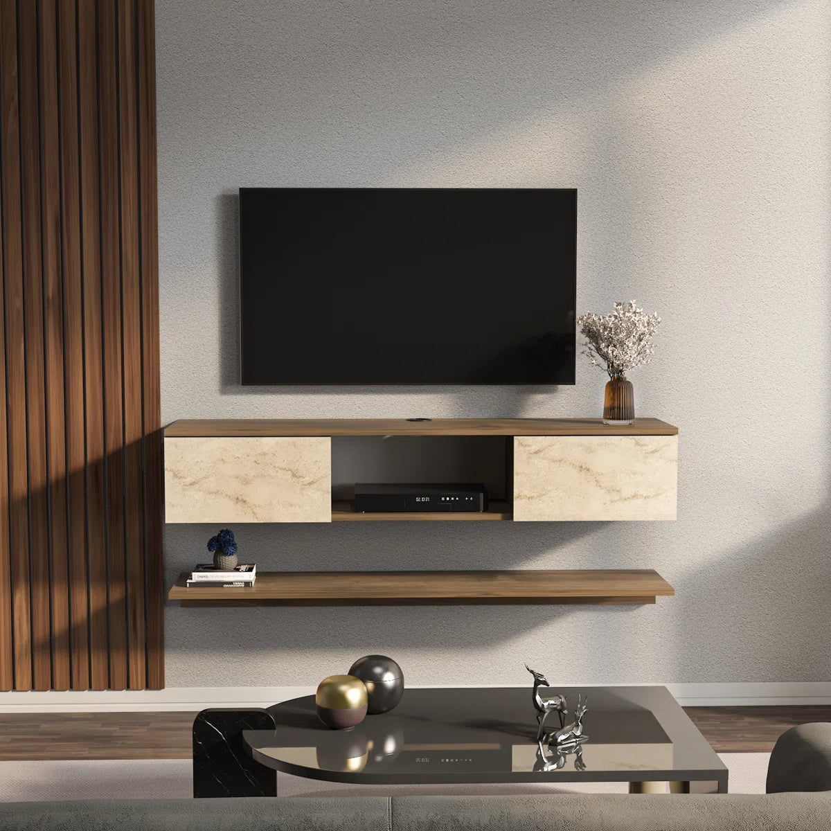 Transform your living space with the sophisticated Reyazel Modern Floating TV Stand in an elegant Walnut and Travertine finish. This sleek wall-mounted unit blends timeless textures with minimalist design, offering both style and smart storage for modern interiors.